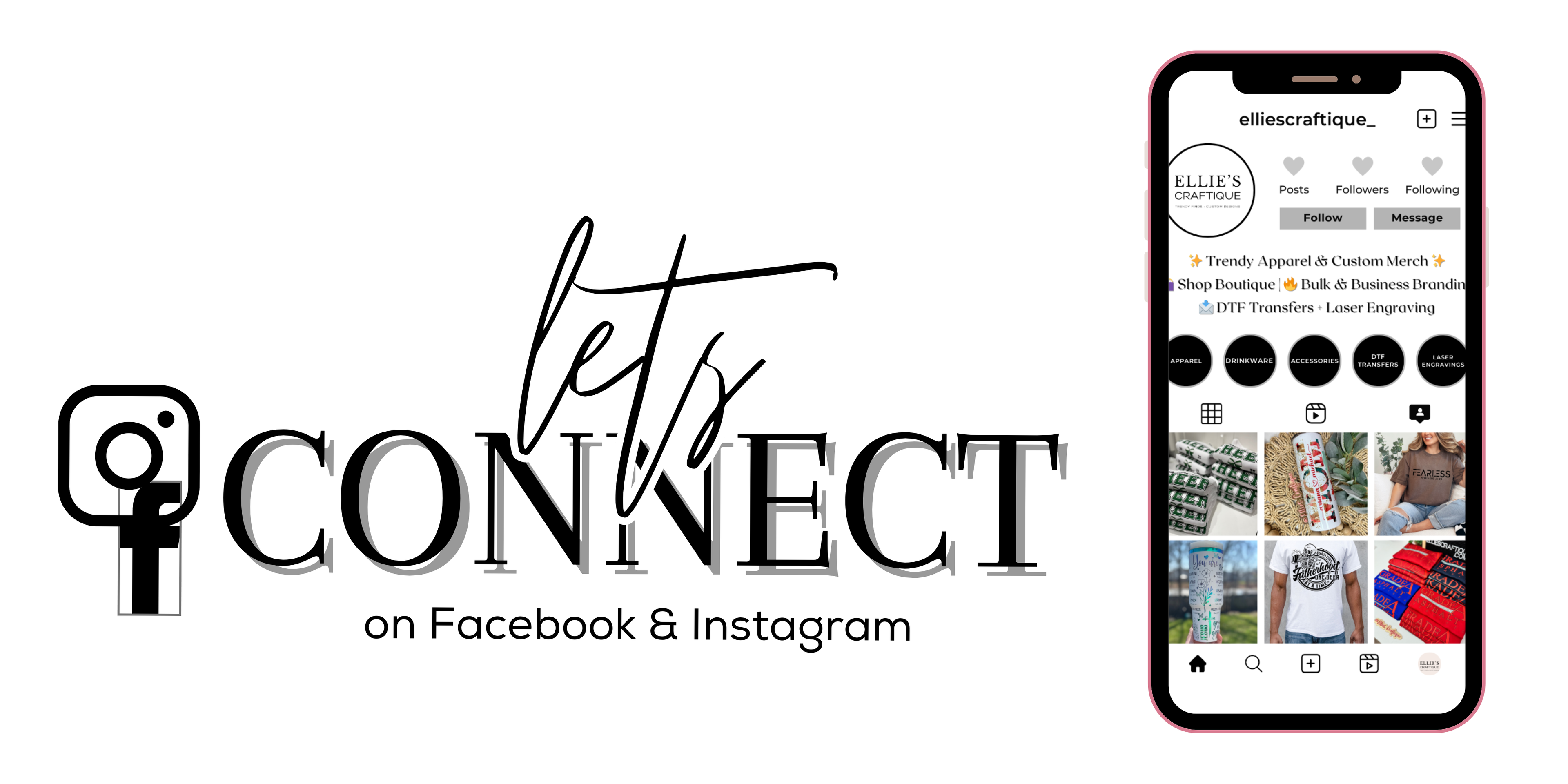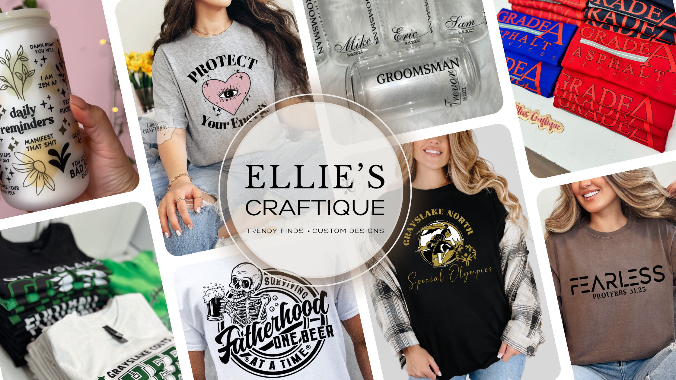 SPECIALIZING IN CHIC AND RELATABLE APPAREL, CUPS AND ACCESSORIES WHILE ALSO OFFERING CUSTOM BRANDING SOLUTIONS FOR BUSINESSES AND EVENTS. WHETHER YOU’RE LOOKING FOR CUTE EVERYDAY PIECES OR BRANDING MERCH TO ELEVATE YOUR BUSINESS OR EVENT. WE’VE GOT YOU COVERED!